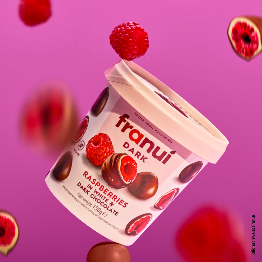 Ein zentrales Motiv im aktuellen Konsumverhalten: Genuss, der sich nicht falsch anfühlt. Frucht steht für Natürlichkeit, Schokolade für Belohnung, Kälte für ein eigenständiges sensorisches Erlebnis. Das Ergebnis ist kein Verzicht, sondern eine neue Balance.